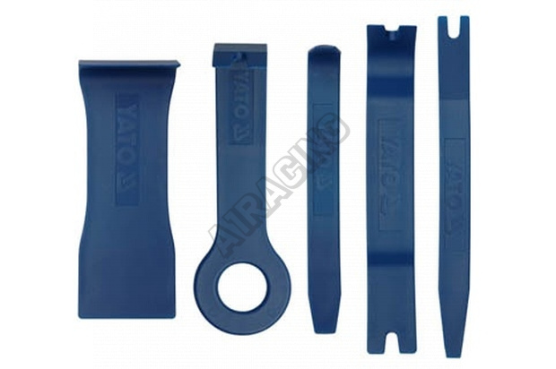 Speciální nástroje pro odstranění čalounění a lišt vozidel. Sada obsahuje pět komponent pro rychlé