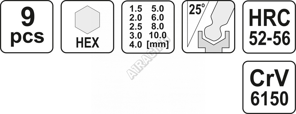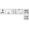 Jednotlivé klíče jsou zhotovené z kvalitní chromvanadiové slitiny oceli CrV 6150, zajišťující dlouhou životnost a korozivzdornost. Díky zvolenému materiálu je tvrdost jednotlivých imbusových klíčů HRC 52-55.
