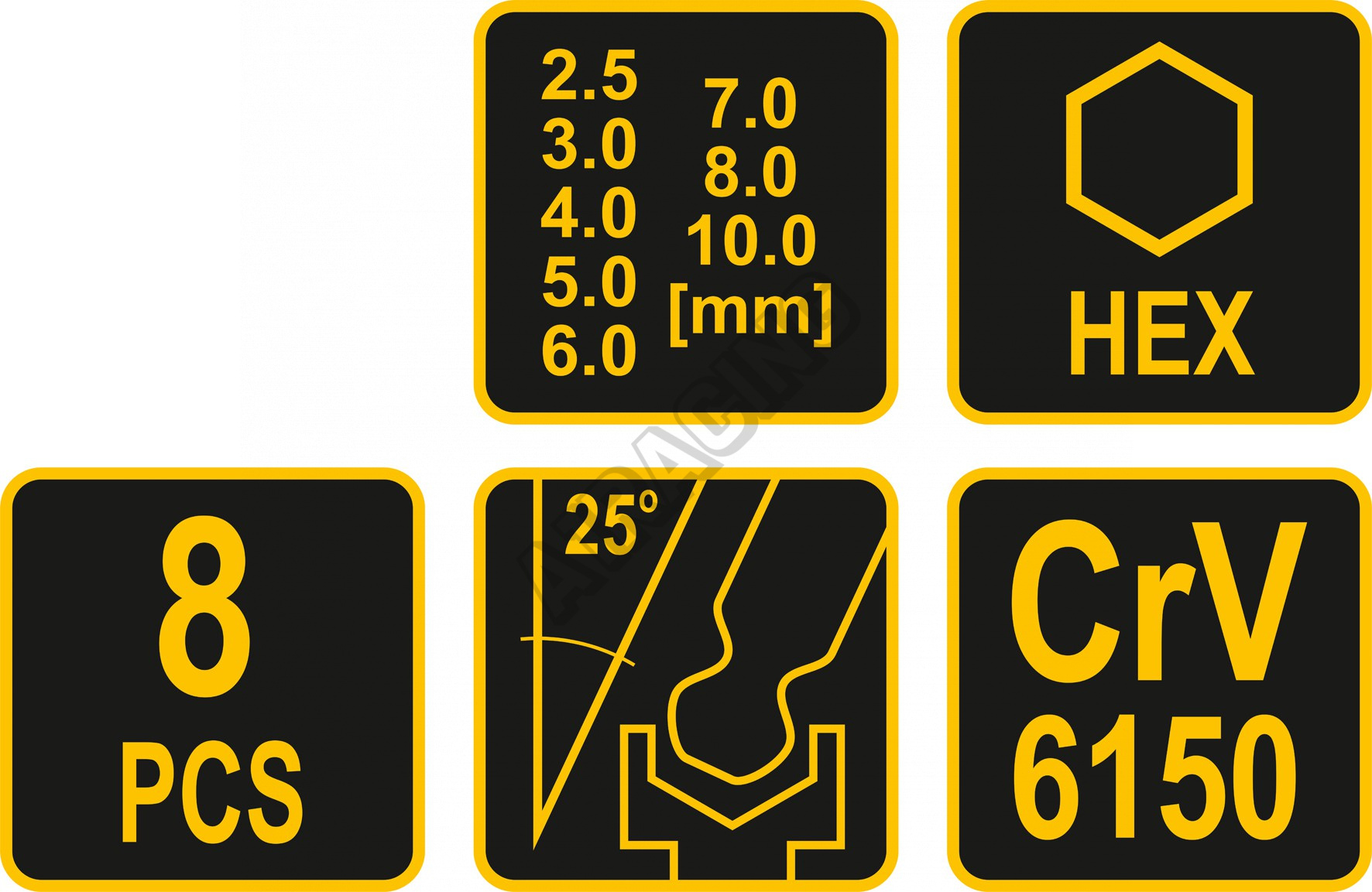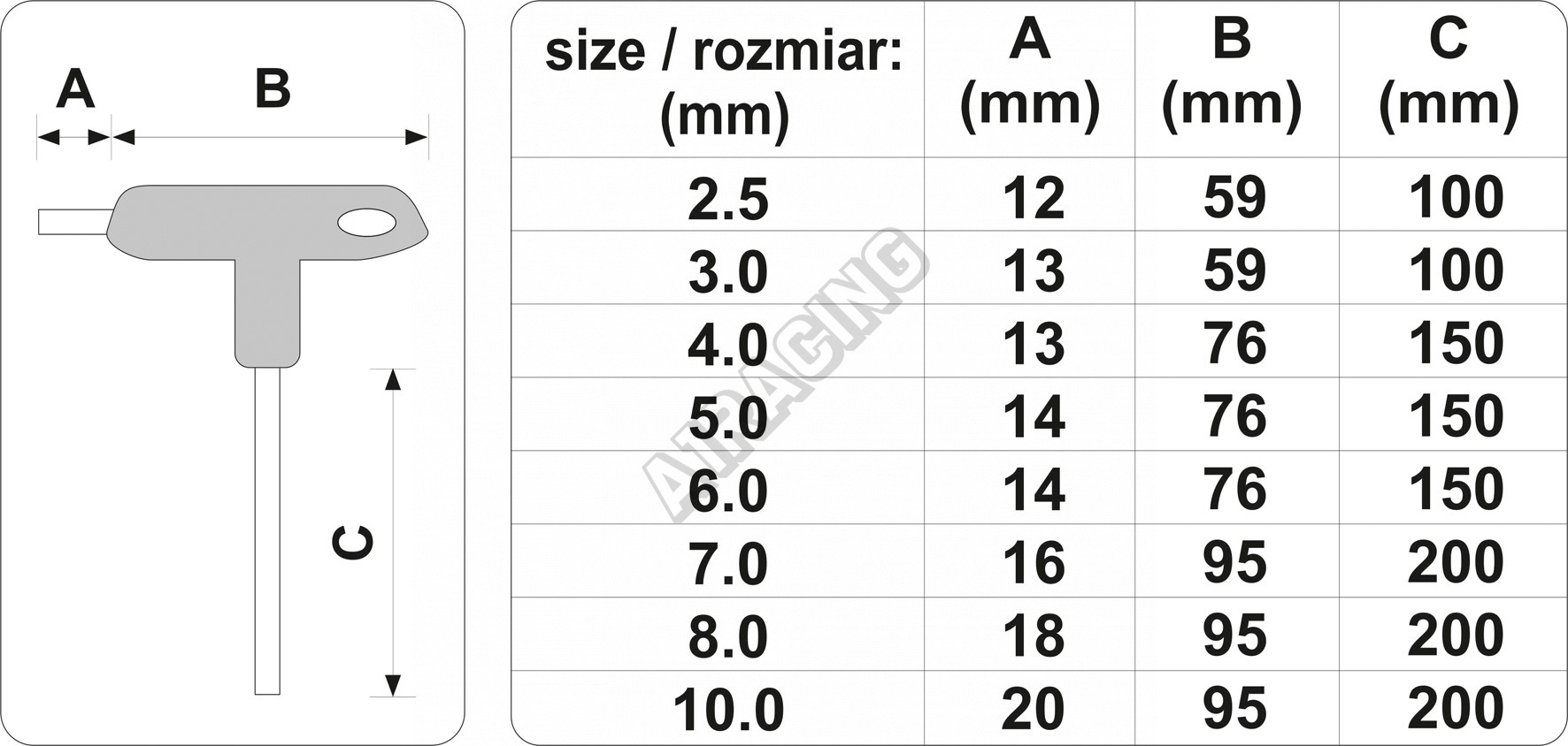 | Velikosti klíčů | 2,5; 3; 4; 5; 6; 7; 8; 10 mm |