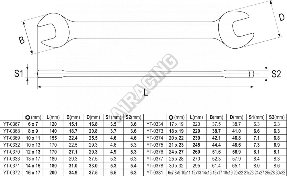 • 6x7, 8x9, 10x11, 12x13, 14x15, 16x17, 18x19, 20x22, 21x23, 24x27 mm