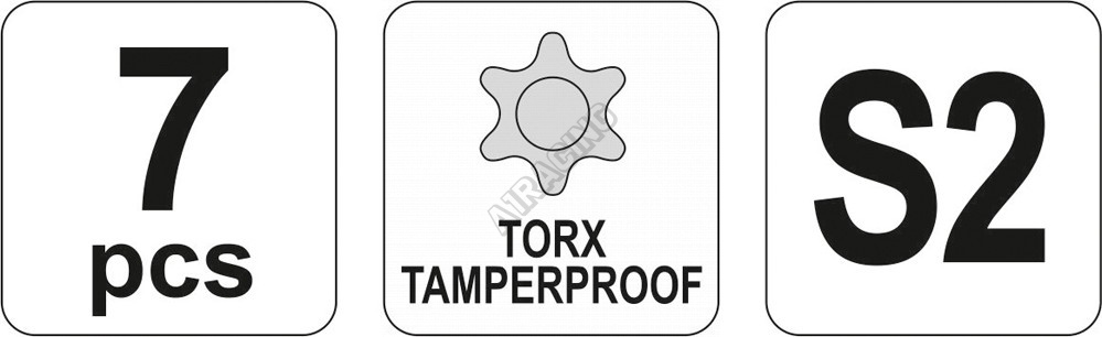 V balení jsou Torx klíče T9; T10; T15; T20; T25; T27; T30 délek 78 - 132 mm.