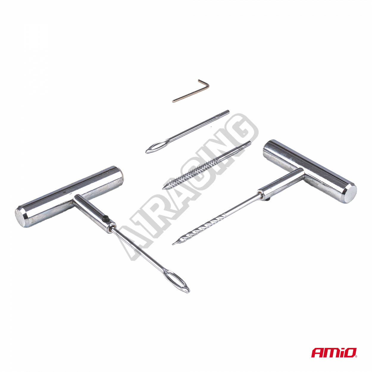 Kompletní sada na opravu bezdušových pneumatik určená pro rychlé a účinné utěsnění propíchnutých pneumatik u osobních automobilů, motocyklů, čtyřkolek a terénních vozidel.