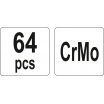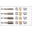 Sada obsahuje opravu pro čtyři typy závitu: M13, M15, M17, M20 a to jednostupňové závitníky z CrMo oceli, 5 ks šroubů a 10 podložek odpovídajících rozměrům pro daný závit.