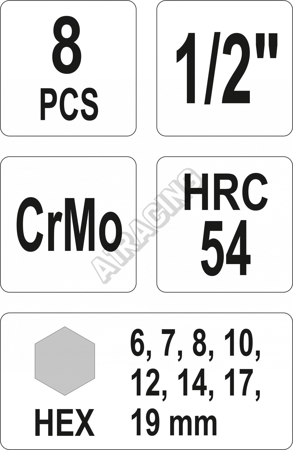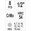 Sada nástavců 1/2" rázové 8 ks H6-H19 imbus CrMo