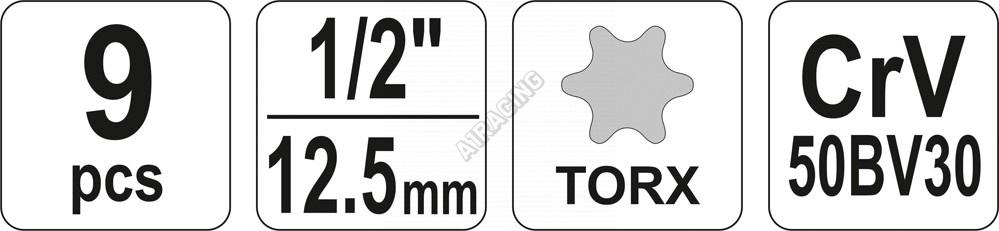 Sada nástavců 1/2" TORX 9 ks E10-E24