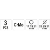 Zhotovení z chrom-molybdenové oceli SCM-440 s měkkou, plastovou objímku, chránící ráfky před poškozením. Nástavce mají chromovaný povrch, barvený pro snadné a rychlé rozlišení velikosti.