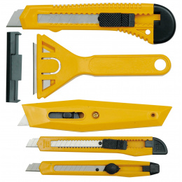 Sada řezacích nožů jsou vhodným pomocníkem v domácnosti, dílně i skladu. Díky ostré kovové čepeli vy