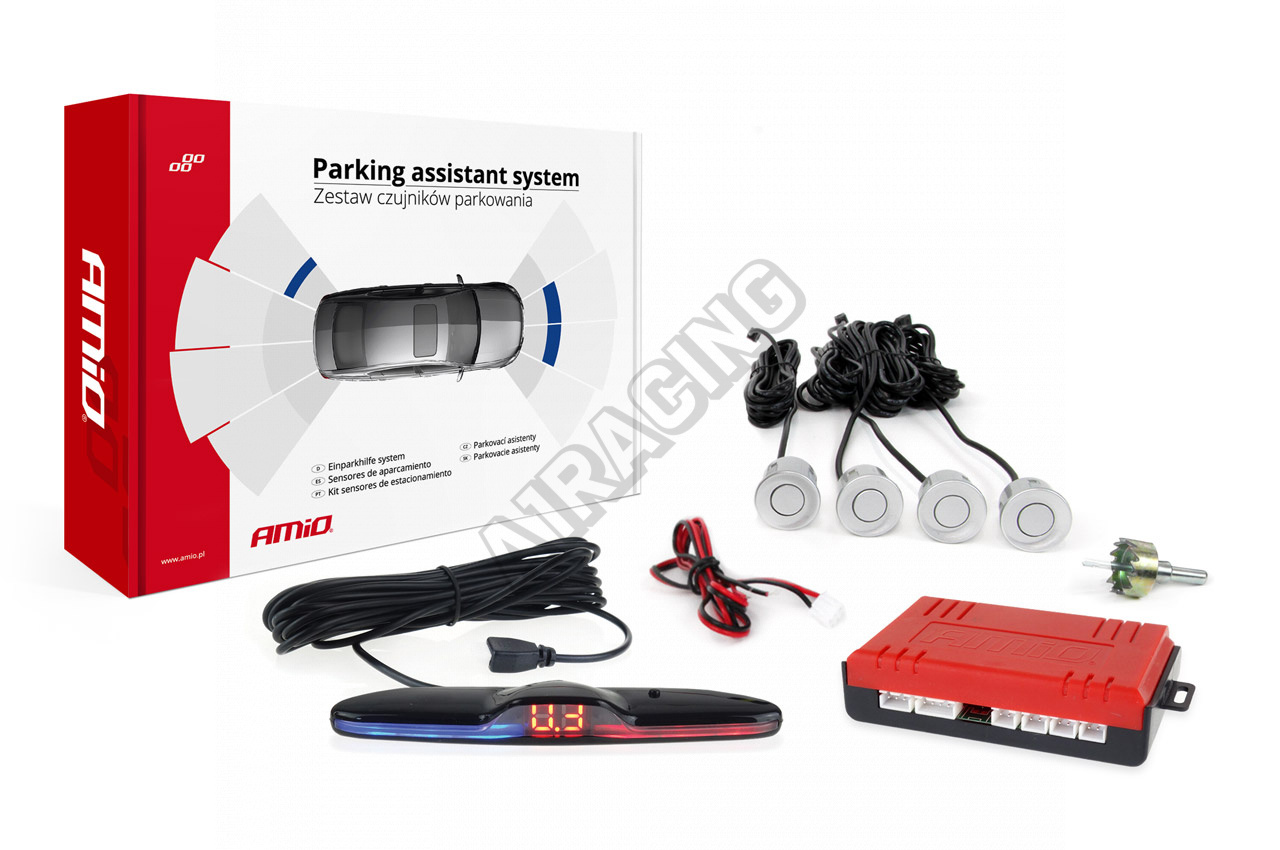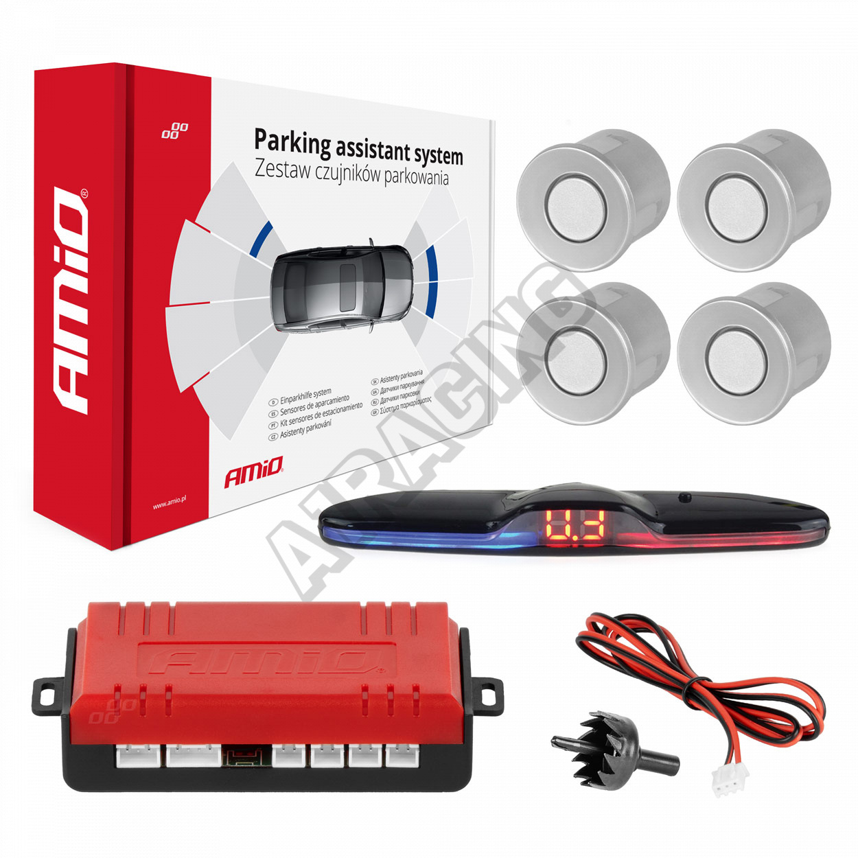 Sada parkovacích senzorů couvací senzory MAX LED 4 stříbrné senzory