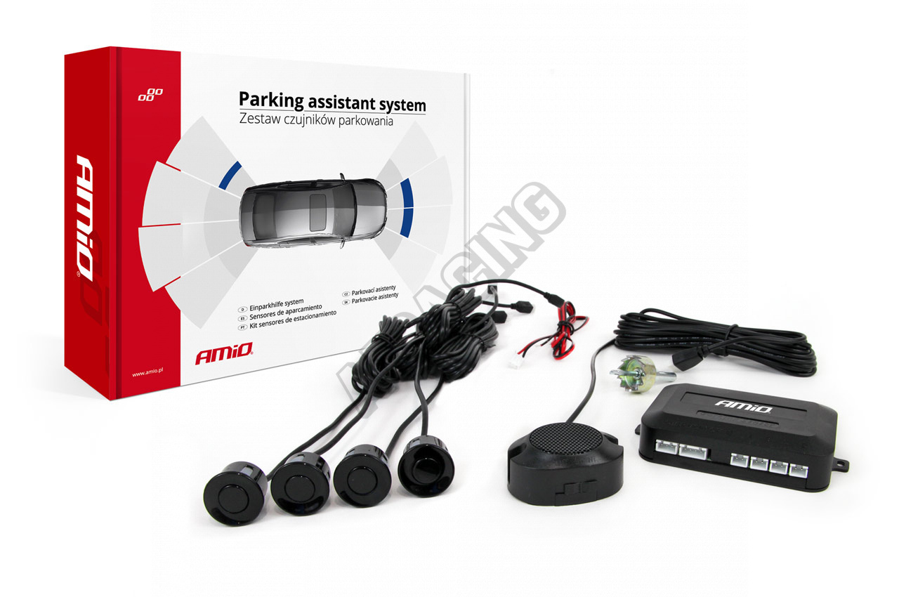 Sada parkovacích senzorů s bzučákem, 4 černé senzory AMIO-01567
