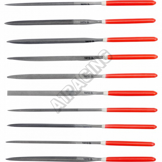 Sada 10 ks pilníků z ložiskové oceli GCR15. Celková délka jednotlivých pilníků 160 mm z nichž brusn