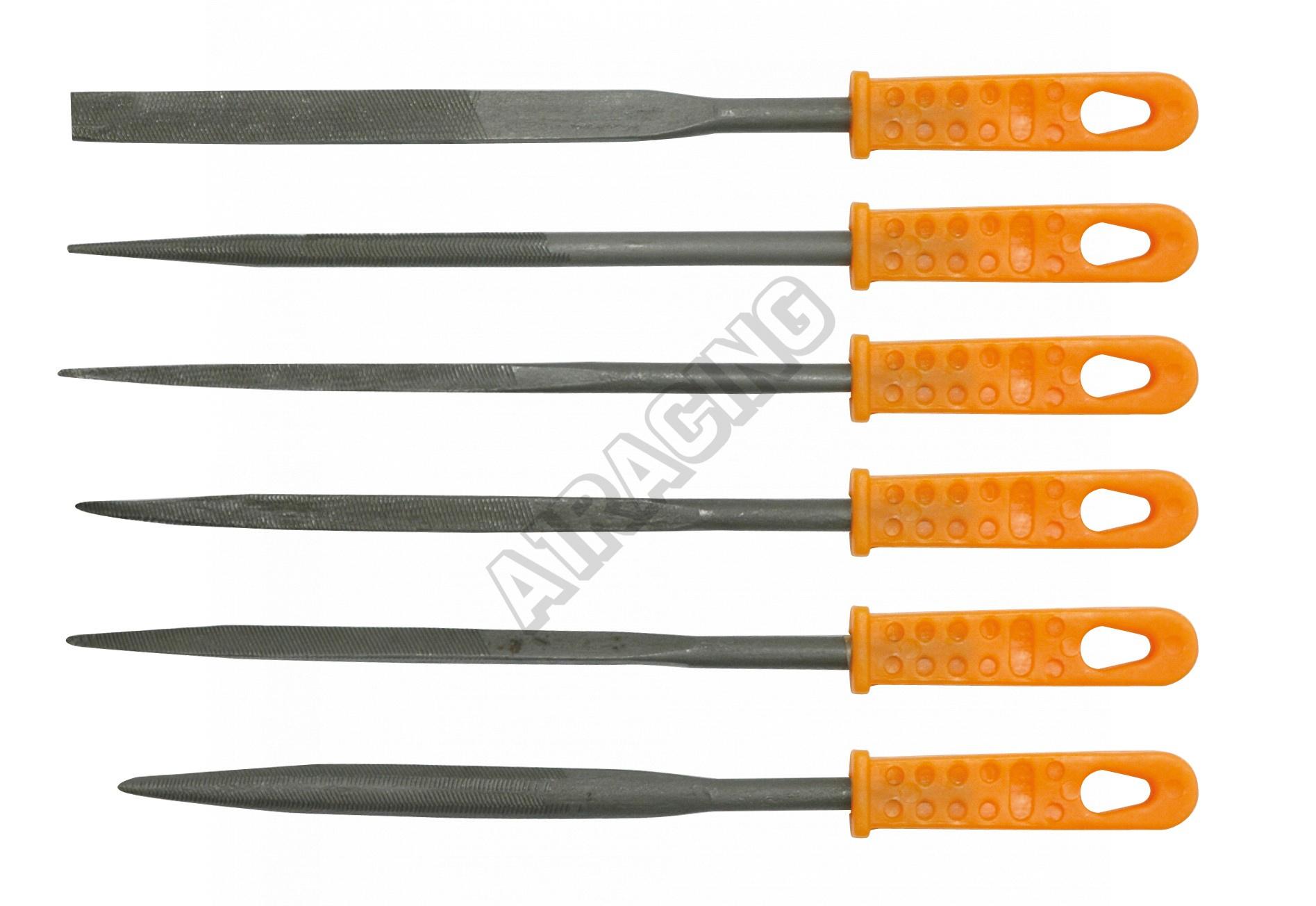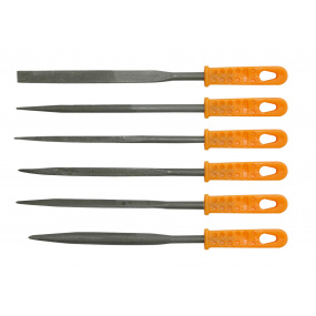 Sada 6 kusů jehlových pilníků s plastovou rukojetí.