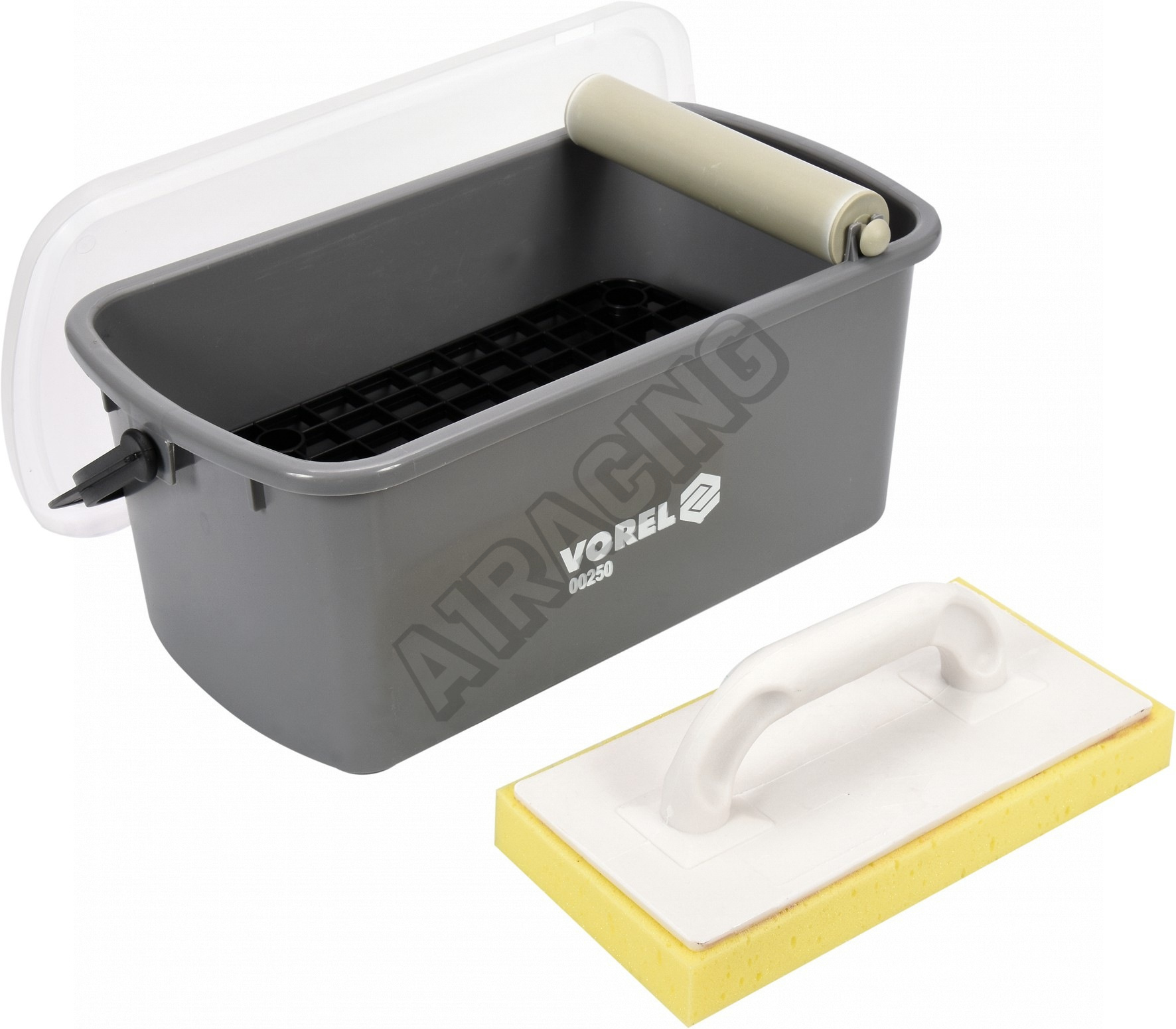 Polypropylenový kbelík s objemem 10l a rozměry 41,5 x 22 x 17,5 cm. Je opatřen válečkem pro vytlačování nečistot z hladítka a uvnitř je opatřen separační mřížkou.