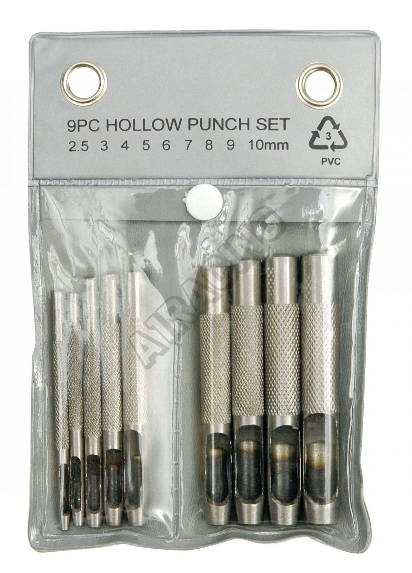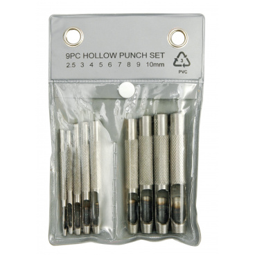 Kvalitní děrovače sada 9 kusů pro vysekávání otvorů v materiálu jako je PVC , kůže, pryž, těsnící papír, tvrdé lepenky apod. Precizní broušené ostří z kvalitní slitiny uhlíkové oceli.