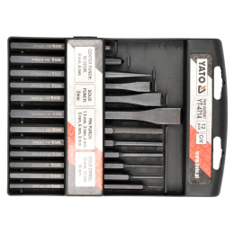 Sada obsahuje válcové razníky 1,5; 3; 4; 5; 6; 8 mm, kuželový razník 2 mm, sekáče 10; 13; 16 mm a důlčíky 6; 8 mm. Délka nástrojů 100 až 150 mm.