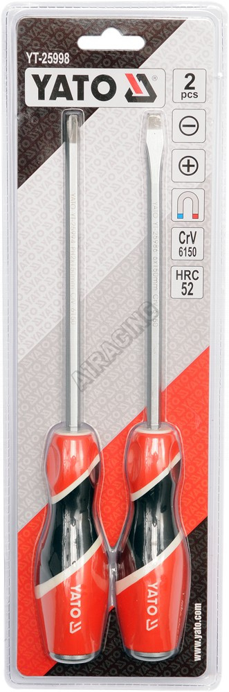 Sada šroubováků 2 ks s magnetickým zakončením a ergonomickou rukojetí s kovovým zakončením.