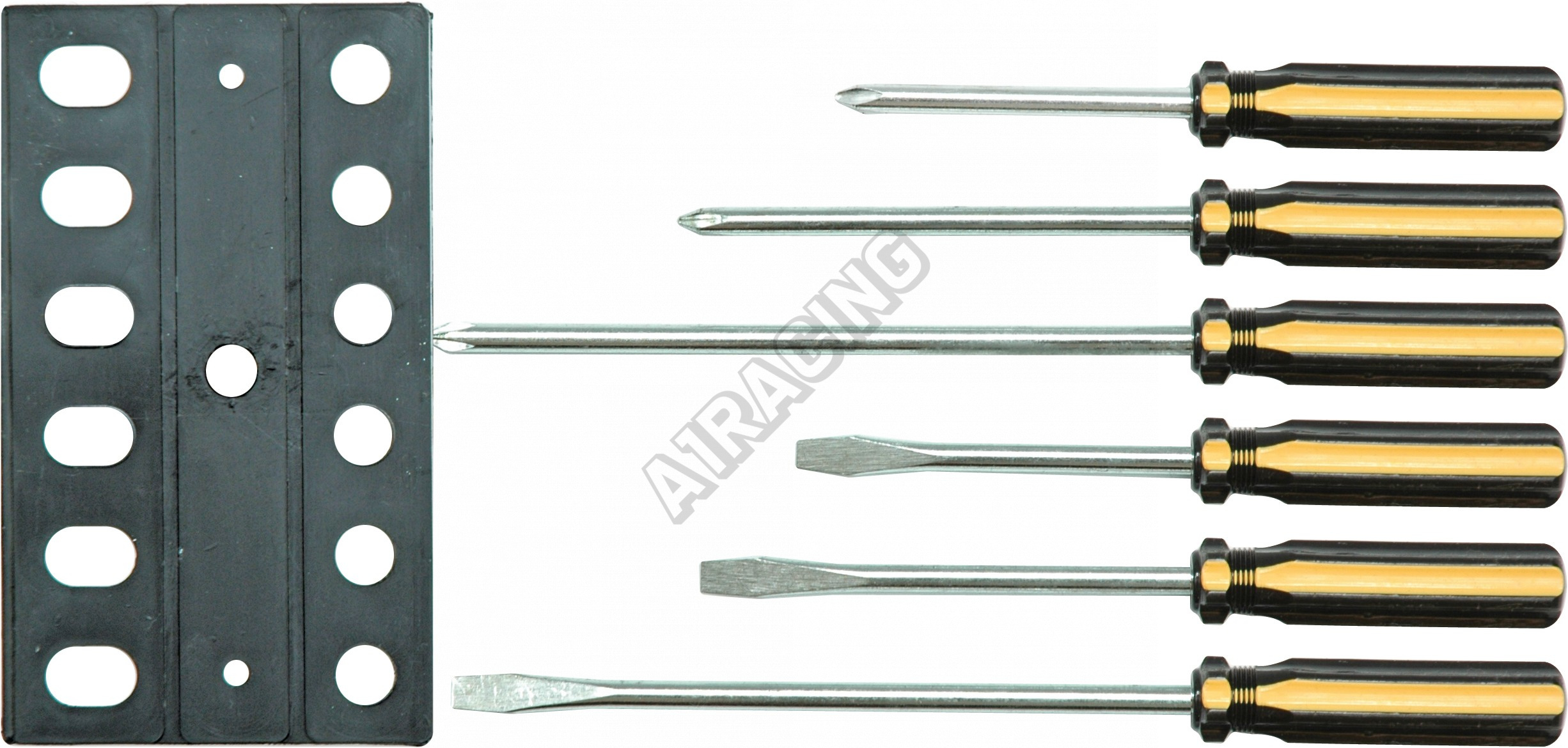 Sada 6-ti šroubováků 3 x plochý, 3 x křížový. Vyrobeno z CrV chrom-vanadiové oceli. Špička má saténový povrch, dodatečně pískovaná.