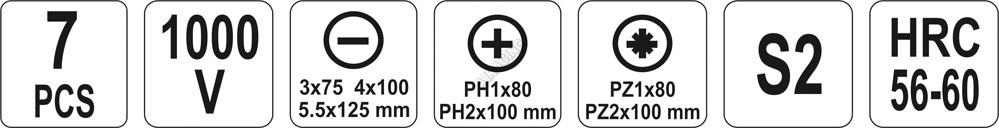 | Šroubovák křížový | PH1x80; PH2x100; PZ1x80; PZ2x100 mm |