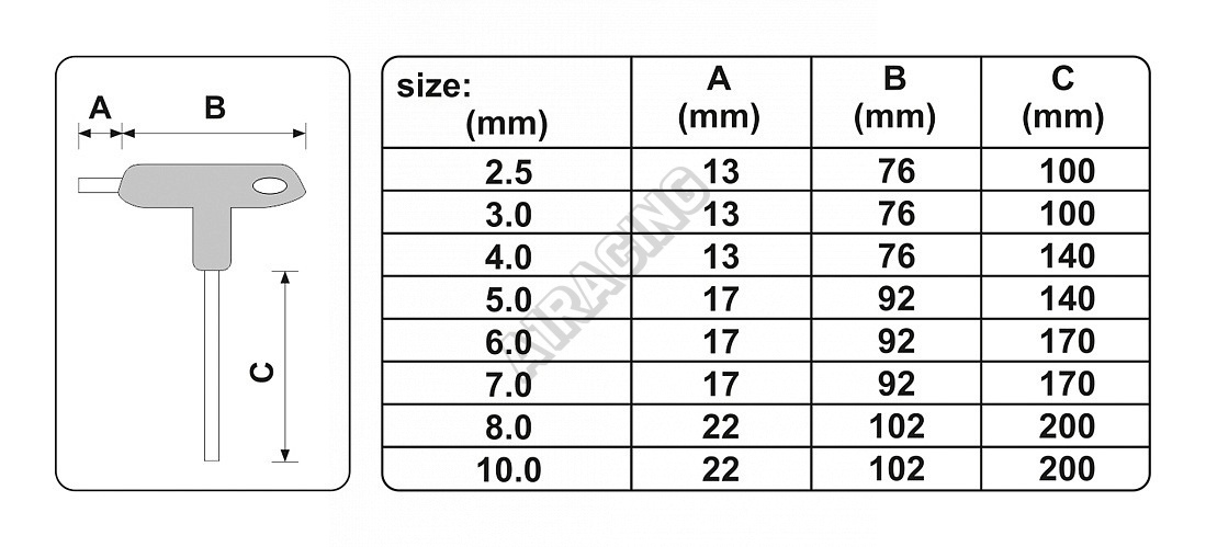 Sada klíčů v provedení T šroubovák, osazený 2x imbus klíčem (1x dlouhý, 1x krátký) a ergonomickou rukojetí, díky které je jeho použití opravdu snadné. Vyrobeno z oceli S2, která zaručuje dlouhou životnost.