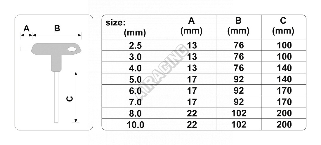Balení obsahuje klíče 2,5, 3, 4, 5, 6, 7, 8 a 10 mm.