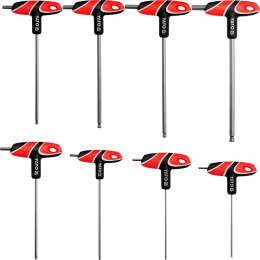 Sada klíčů v provedení T šroubovák, osazený 2x imbus klíčem s kulovým zakončením (1x dlouhý, 1x krátký) a ergonomickou rukojetí, díky které je jeho použití opravdu snadné. Vyrobeno z oceli S2, která zaručuje dlouhou životnost.