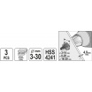 Vrtáky jsou opatřeny několika stupni průměrů, 3 - 14 mm; 8 - 20 mm a 16 - 30 mm které mohou vrtat vždy max. do hloubky 4 mm.