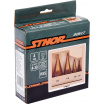 Sada 4 ks stupňovitých kuželových vrtáků na kov umožňující postupné vyvrtání více průměrů otvorů. Vr