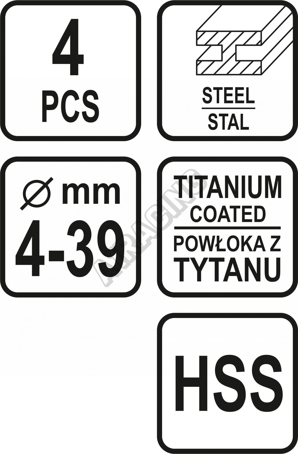 Sada stupňovitých vrtáků 4ks 4-39 mm
