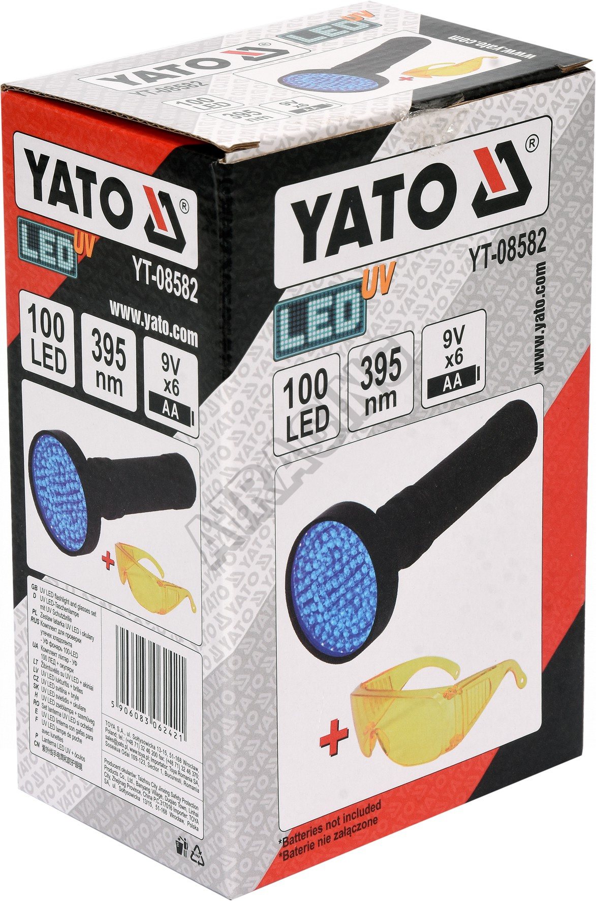 Počet 100 LED UV poskytuje velmi silný paprsek záření pro usnadnění detekce úniku. Součástí balení jsou ochranné brýle proti UV záření, které splňují požadavky evropské směrnice o osobních ochranných prostředcích.