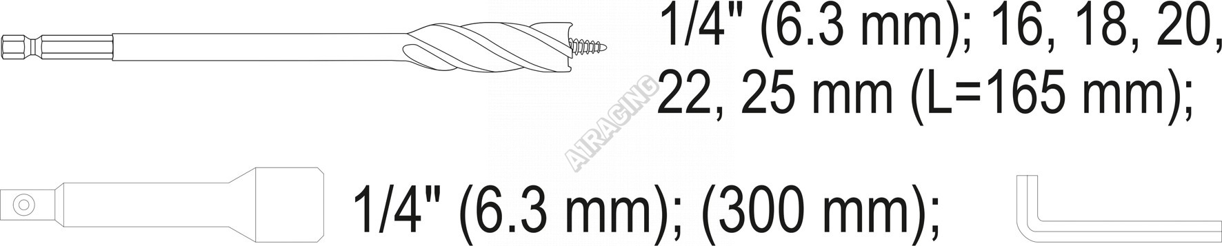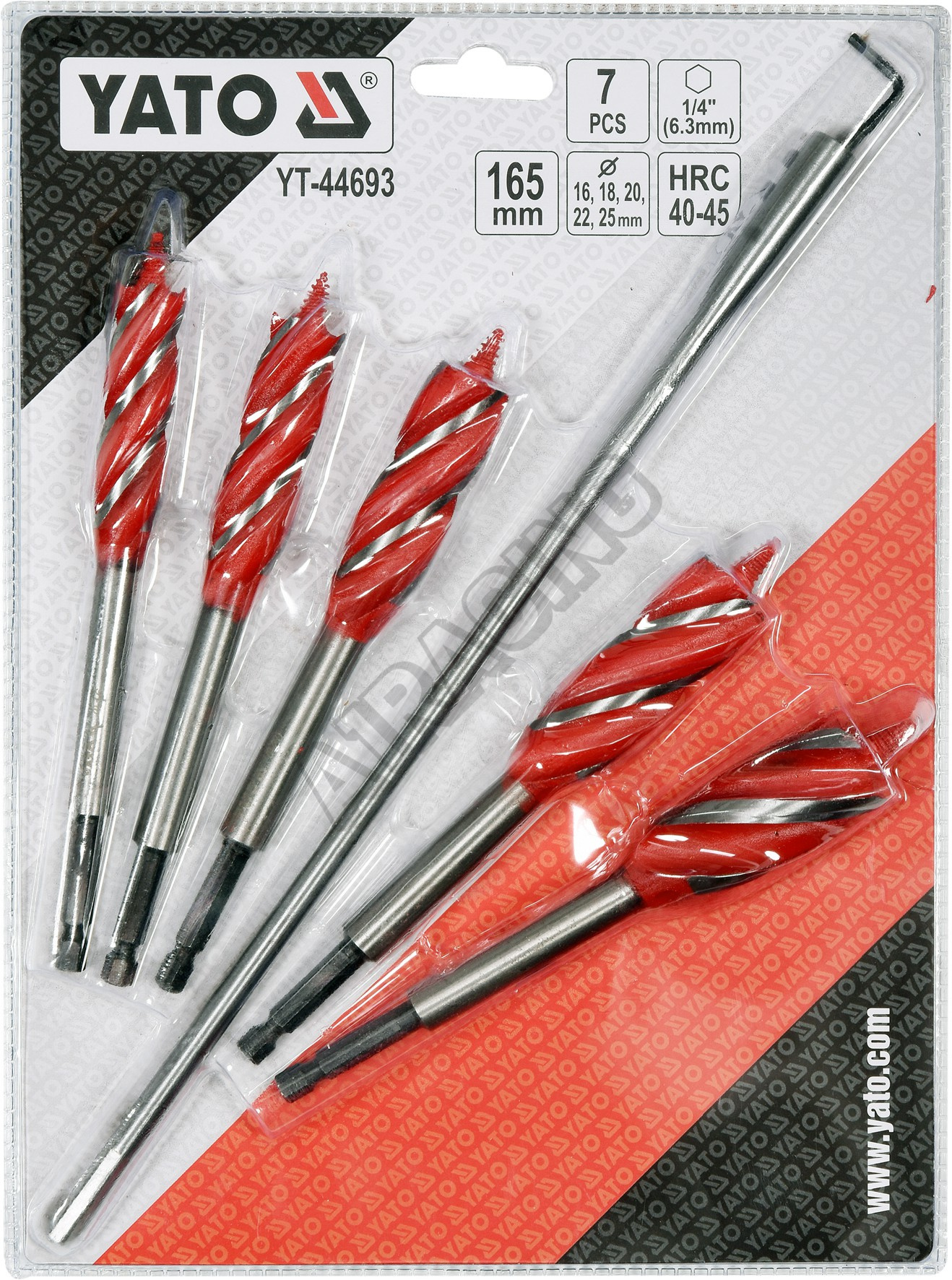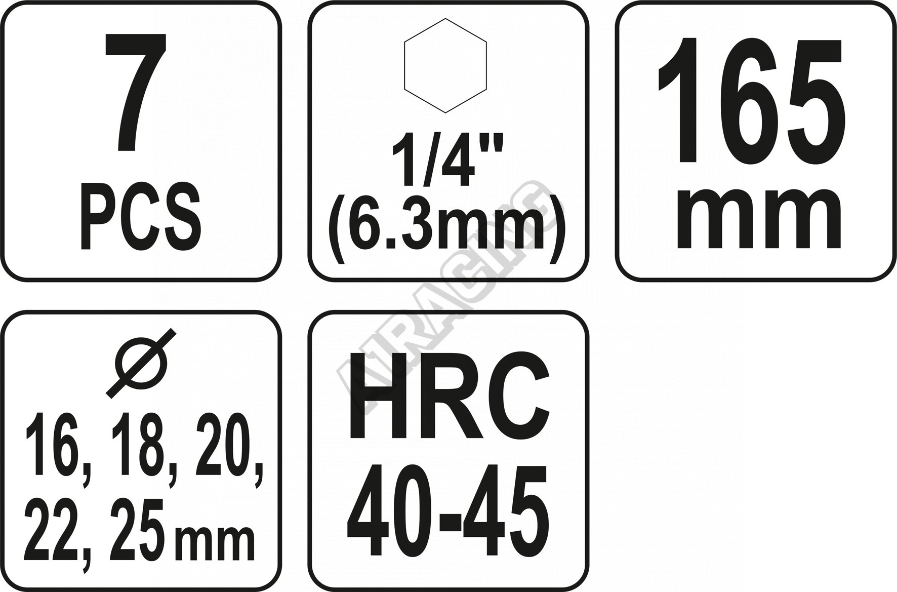 Vrtáky v sadě mají průměry 16; 18; 20; 22; 25 mm a pro rychlé a efektivní vrtání jsou opatřeny 4 čepelemi.