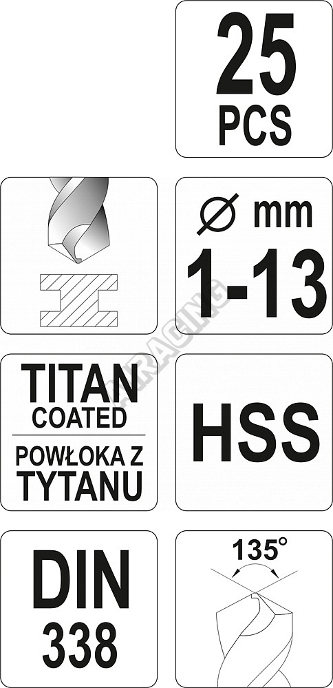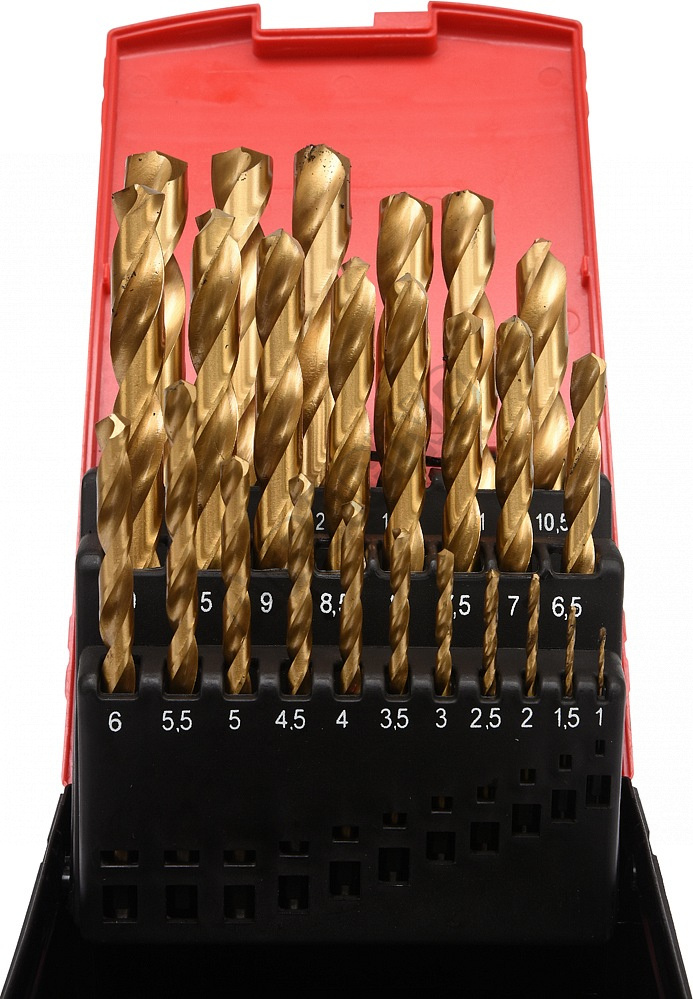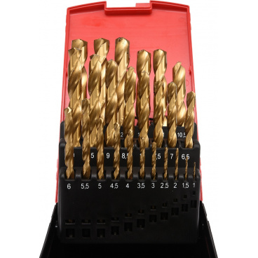 Sada se skládá z 25 ks vrtáků od 1 - 13 mm uložených v plechové krabičce.