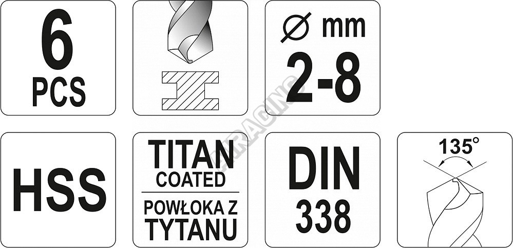Sada vrtáků do železa HSS-TiN 6ks 2-8mm