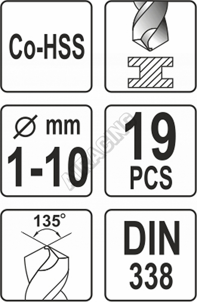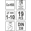 Sada vrtáků na kov 19ks HSS-COBALT 1-10mm