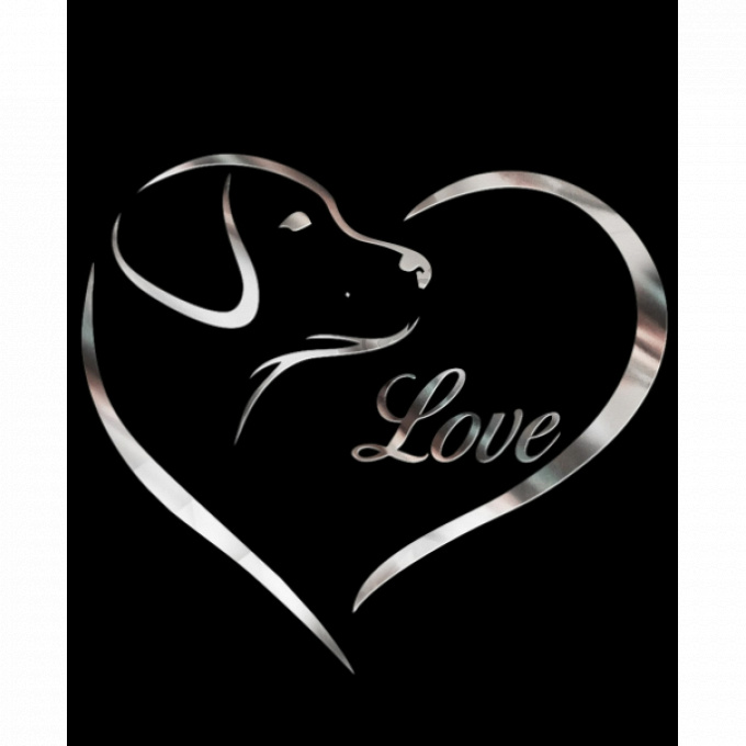 Samolepící dekor kovový LOVE DOG Vysoce kvalitní dekor z niklu. Připevnění pomocí podlepení a pomoc