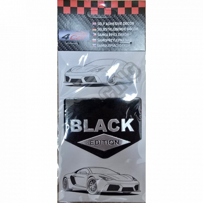 Samolepící kovový znak BLACK EDITION 80X62 mm Plastová černá část s kovovým logem. Připevnění pomoc
