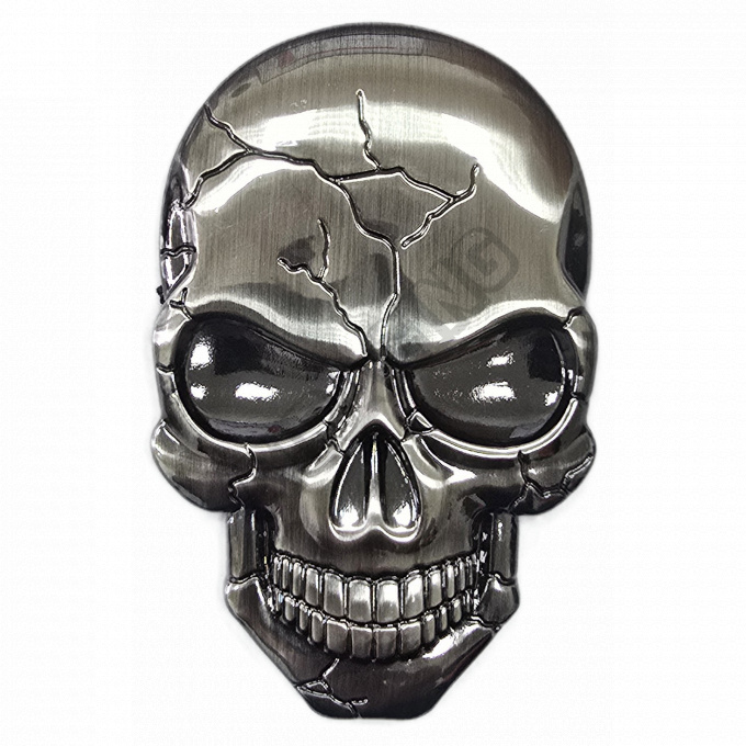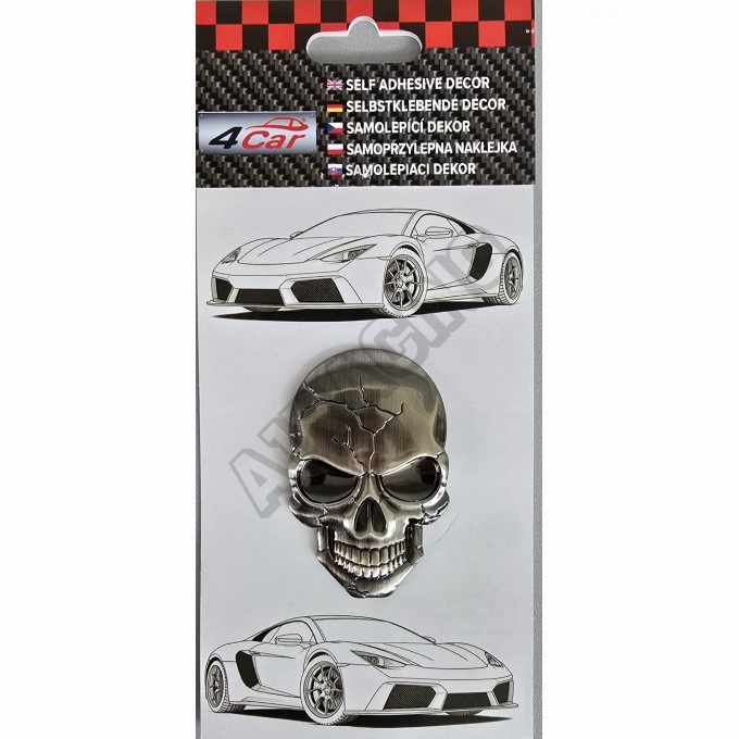 Samolepící kovový znak LEBKA (silver) 43x68 mm Plastová černá část s kovovým logem. Připevnění pomo