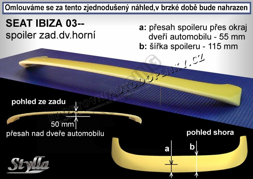 SEAT IBIZA (03+) spoiler zad. dveří horní (EU homologace)