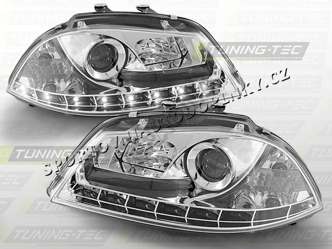SEAT IBIZA 2002-08 PŘEDNÍ ČÍRÁ SVĚTLA DAYLIGHT LED CHROME