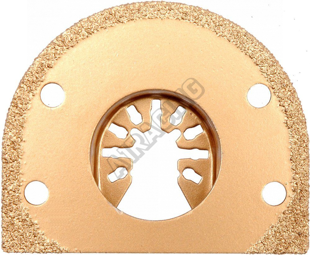 Segmentový řezací nástroj HM s nánosem karbidu wolframu s upínacím systémem OIS, pro řezání stavebních materiálů nař. dlažby, obklady, beton, zdivo. Upínání OIS, dovoluje tento nástroj použít v oscilačních přístrojích značek, jako například Fein, Bosch, Makita, Miwaukee, AEG, Skil, Einhell, Yato, PowerUp, Extol, Worx, Multi Master, Rockwell a mnoho dalších.