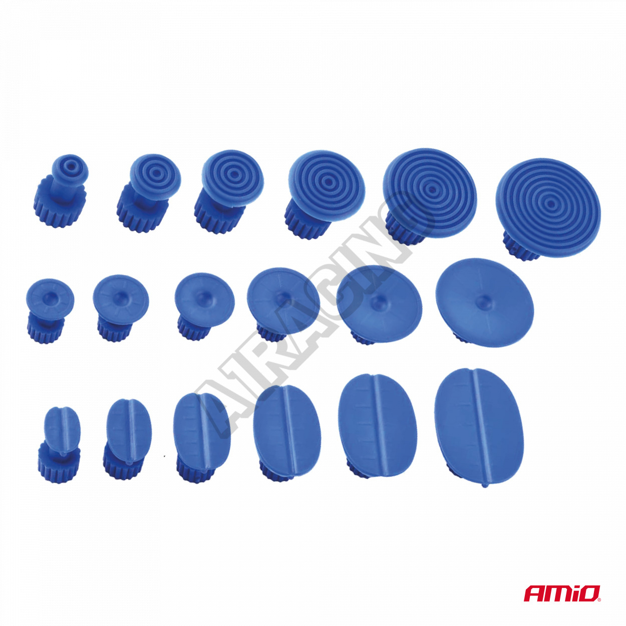 Sada obsahuje 18 vyměnitelných houbiček o různých průměrech, což poskytuje plnou flexibilitu při práci s různými druhy promáčklin – od drobných bodových po větší plošné. Ergonomická rukojeť a pevná konstrukce zajišťují pohodlí při práci i při delším používání, zatímco bezporuchová mechanika kladiva zaručuje opakovatelnost výsledků.