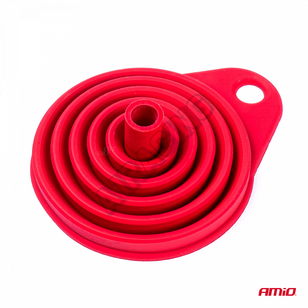 Skládací silikonová nálevka je nezbytné příslušenství pro každý opravárenský salon a garáž. Může být používán k nalévání chladicí kapaliny, kapaliny do ostřikovačů, motorového oleje a dalších provozních kapalin. Tvar a velikost trychtýře je přizpůsobena většině plnicích otvorů na kapaliny a oleje. Díky možnosti složení je jeho skladování velmi jednoduché, můžete ho mít v šuplíku v garáži, autě, nebo pověsit na háček.