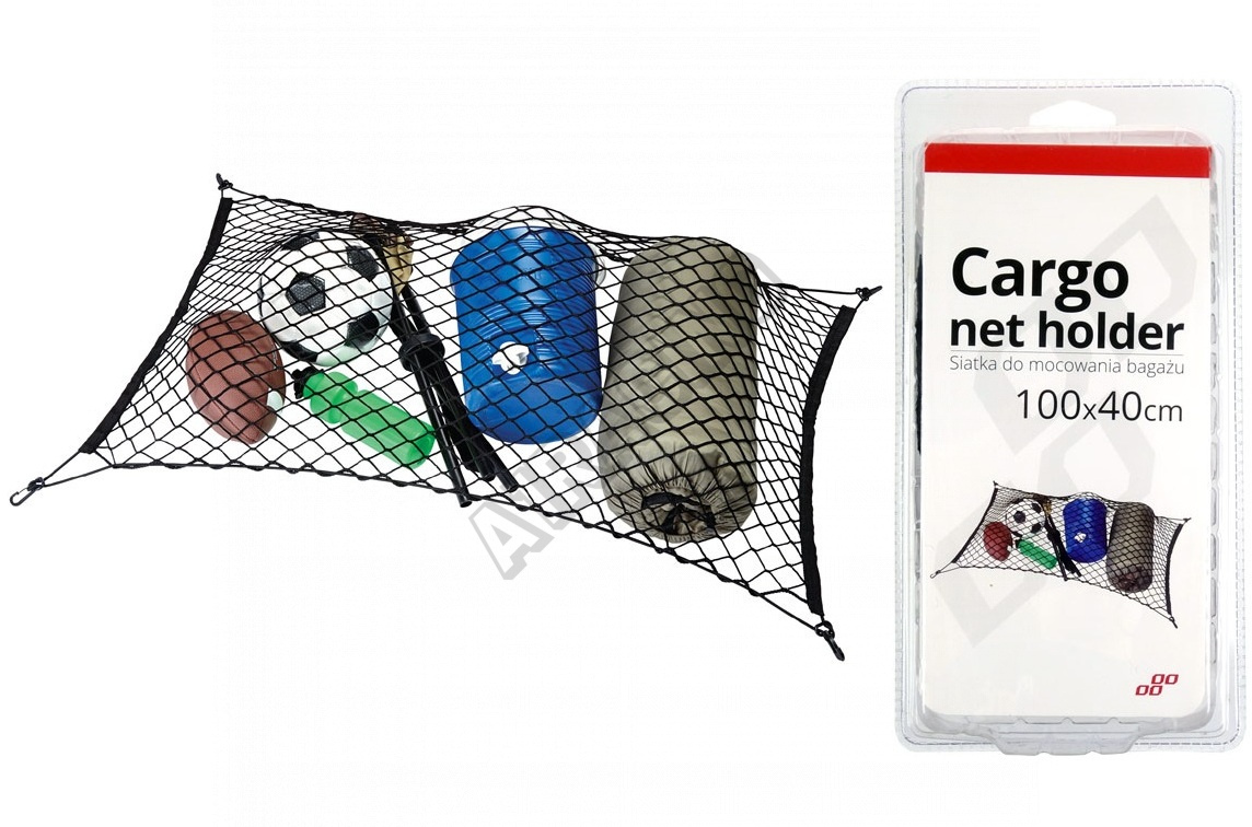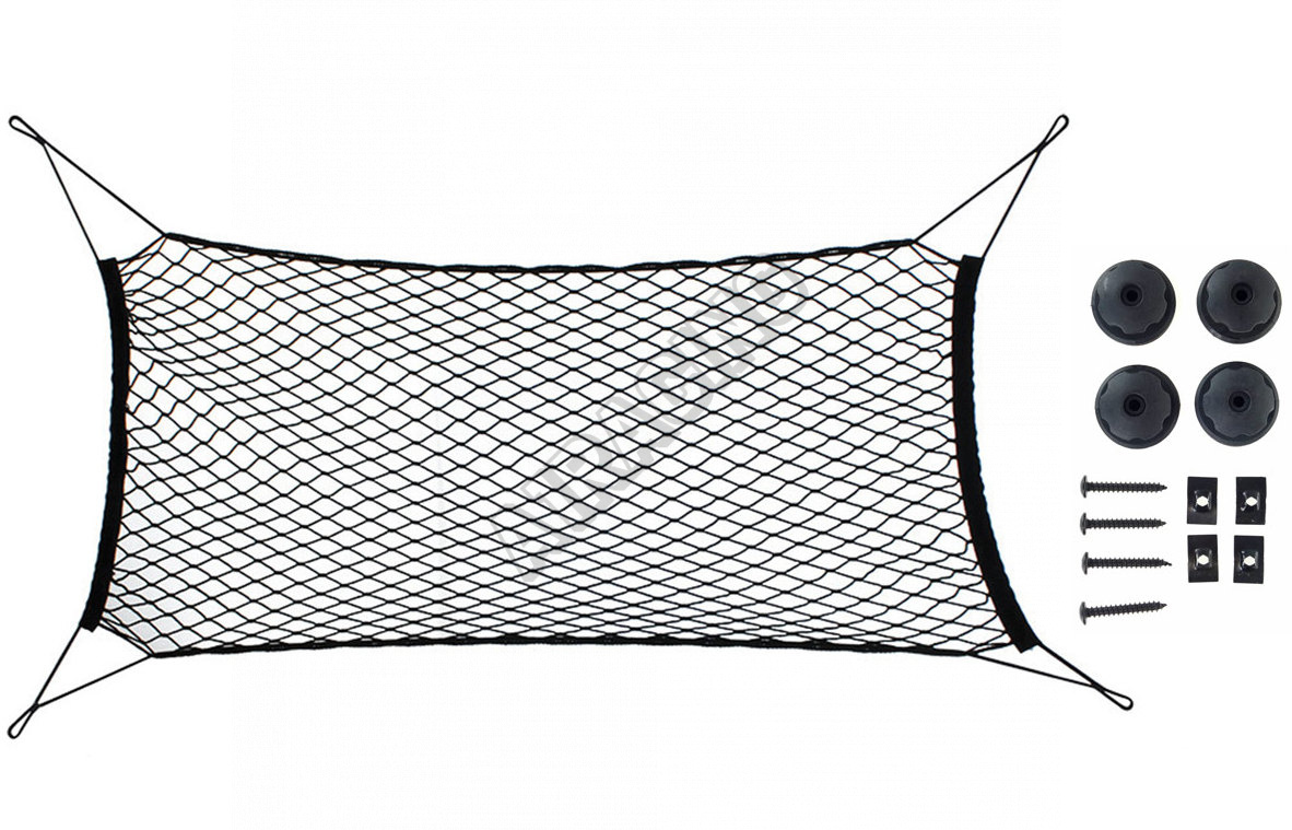 Uchycení pomocí oček, pokud nemáte síť jak uchytit, tak součástí je sada černých plastových uchycovacích koleček, které jednoduše samořezkama uchytíte do podlahy a nebo do spodní části bočnic zavazadlového prostoru,velikost bez natáhnutí je 40x100 cm, po natáhnutí se rozměr může zvětšit až na dvojnásobek