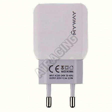 Síťová domácí nabíječka do 220V se 2 USB 2,4A Síťová nabíječka se 2 zásuvkami USB-A. Celkový výkon