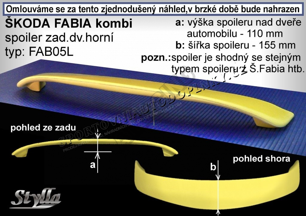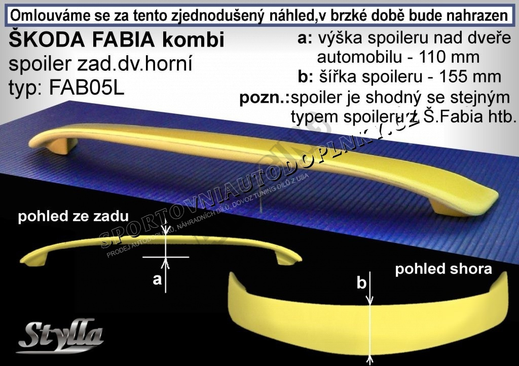 ŠKODA FABIA HTB spoiler zad. dveří horní (EU homologace)