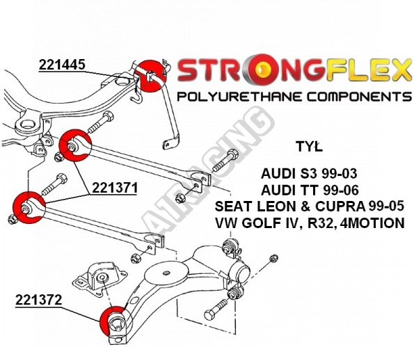Škoda Octavia I StrongFlex Sport sestava silentbloků jen pro zadní nápravu 8 ks obsahuje: