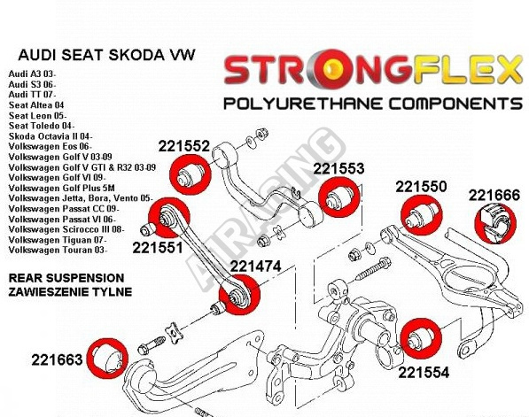 Škoda Octavia II 2004-... StrongFlex sestava silentbloků jen pro zadní nápravu 16 ks