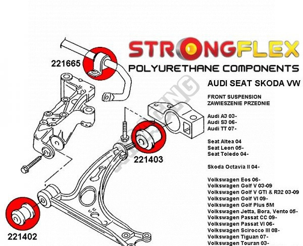 Škoda Octavia II 2004-... StrongFlex Sport sestava silentbloků jen pro přední nápravu 6 ks5 015 Kč