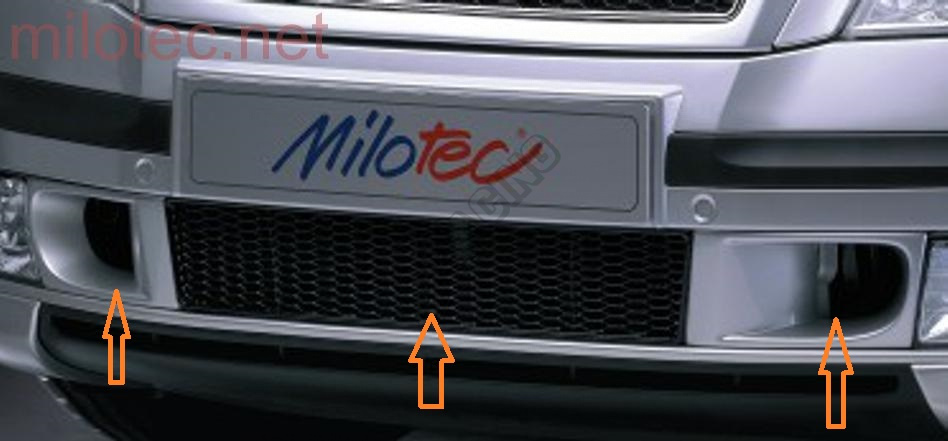 Montáž třídílné mřížky nárazníku se provádí jednoduchou výměnou za originální plastové mřížky.