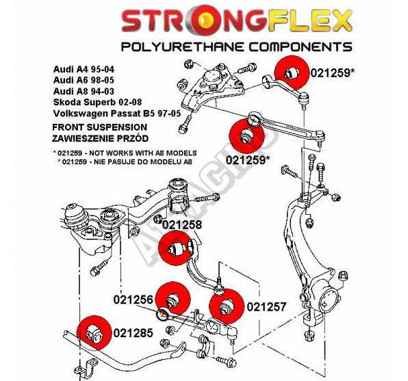 Škoda Superb StrongFlex sestava silentbloků jen pro přední nápravu 12 ks obsahuje: