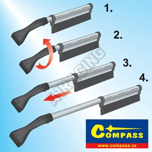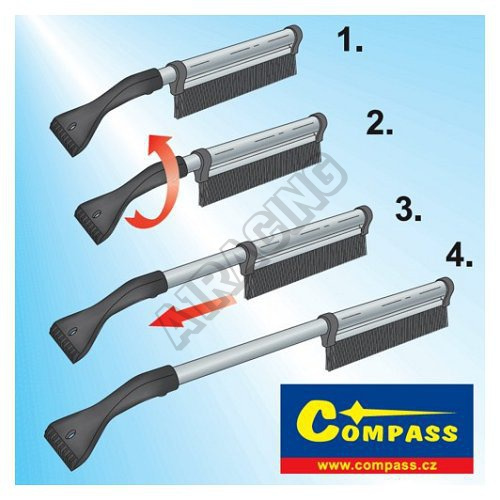Teleskopické košťátko se škrabkou, hliníková konstrukce. Ideální do zimního počasí. Díky výsuvné rukojeti vhodné o pro větší vozy - snadno lze odstranit sníh či námrazu z míst, kam s běžnou škrabkou nedosáhnete.