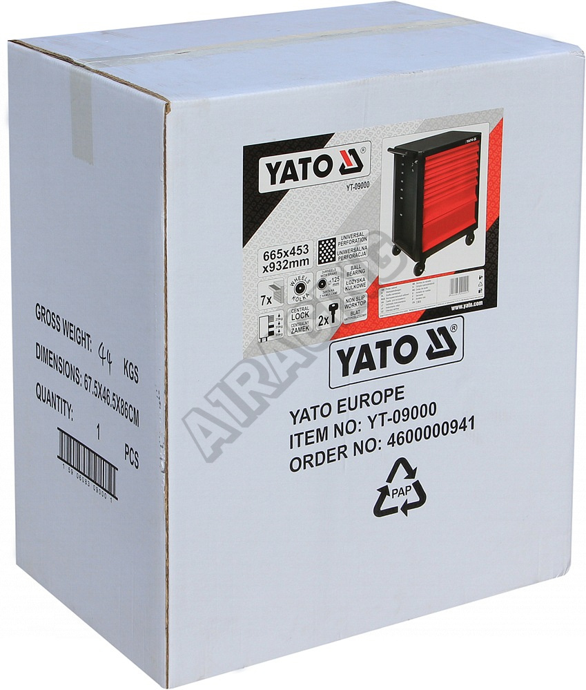 Dílenská skříňka značky YATO, se 7x zásuvkami s kuličkovými ložisky a centrálním zamykáním.